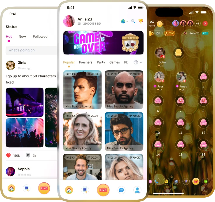 Engage instantly with live streamers and users through seamless video, chat, and reactions. JT Gold Live makes every conversation feel natural, lively, and truly connected.